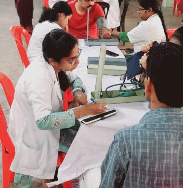 Dr.A.Jennifer Lancy, Dr.P.Ramalakshmi, Dr.Bharat Christian CBS, Dr.Abarna.S, Dr.Rajeswari.V and Dr.Prakash SL examined the patients and gave treatment recommendations. Apart from consultation, medicines were also distributed at free of cost. Almost 100 patients were benefited through this camp.